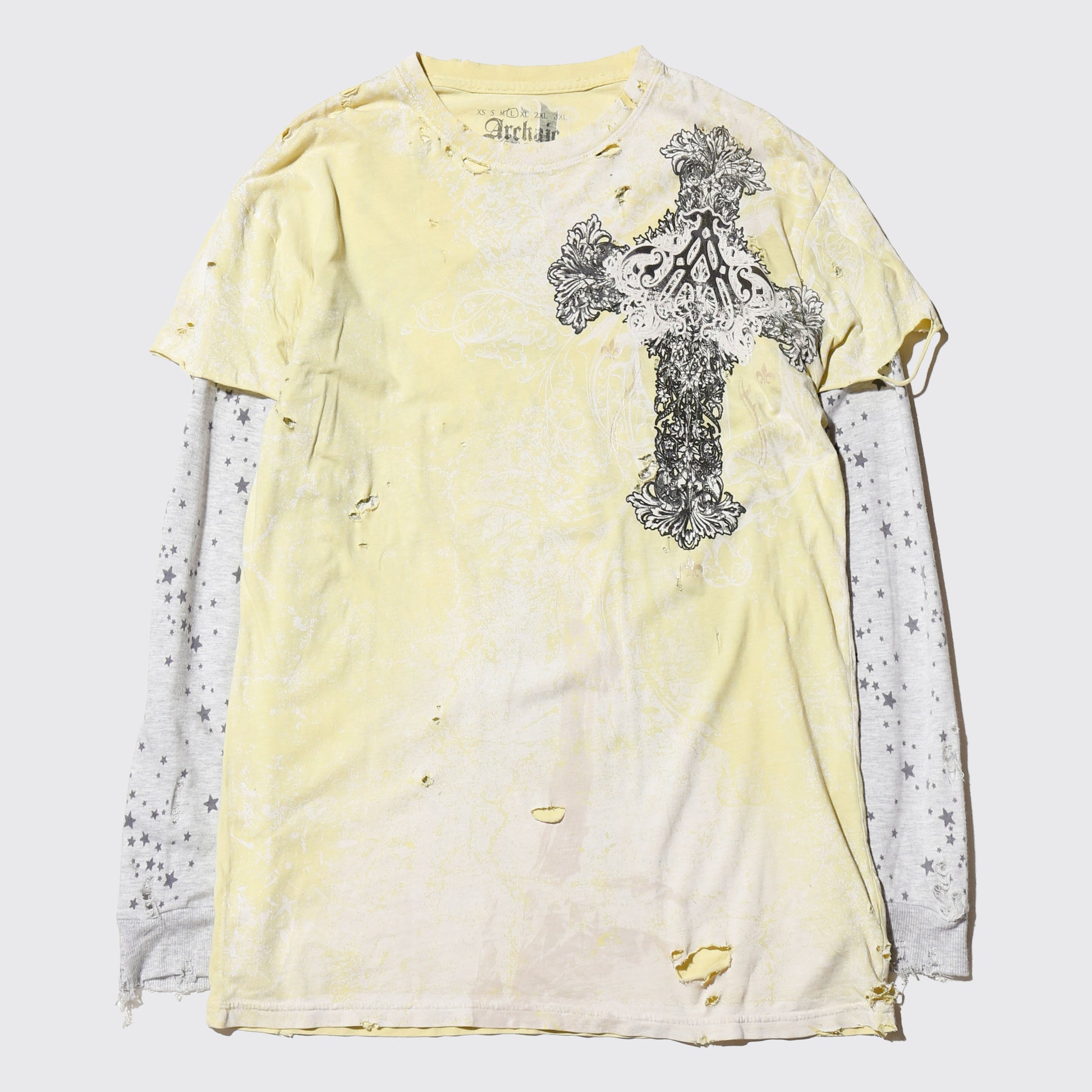 *one-off layered sleeve cross broken l/s