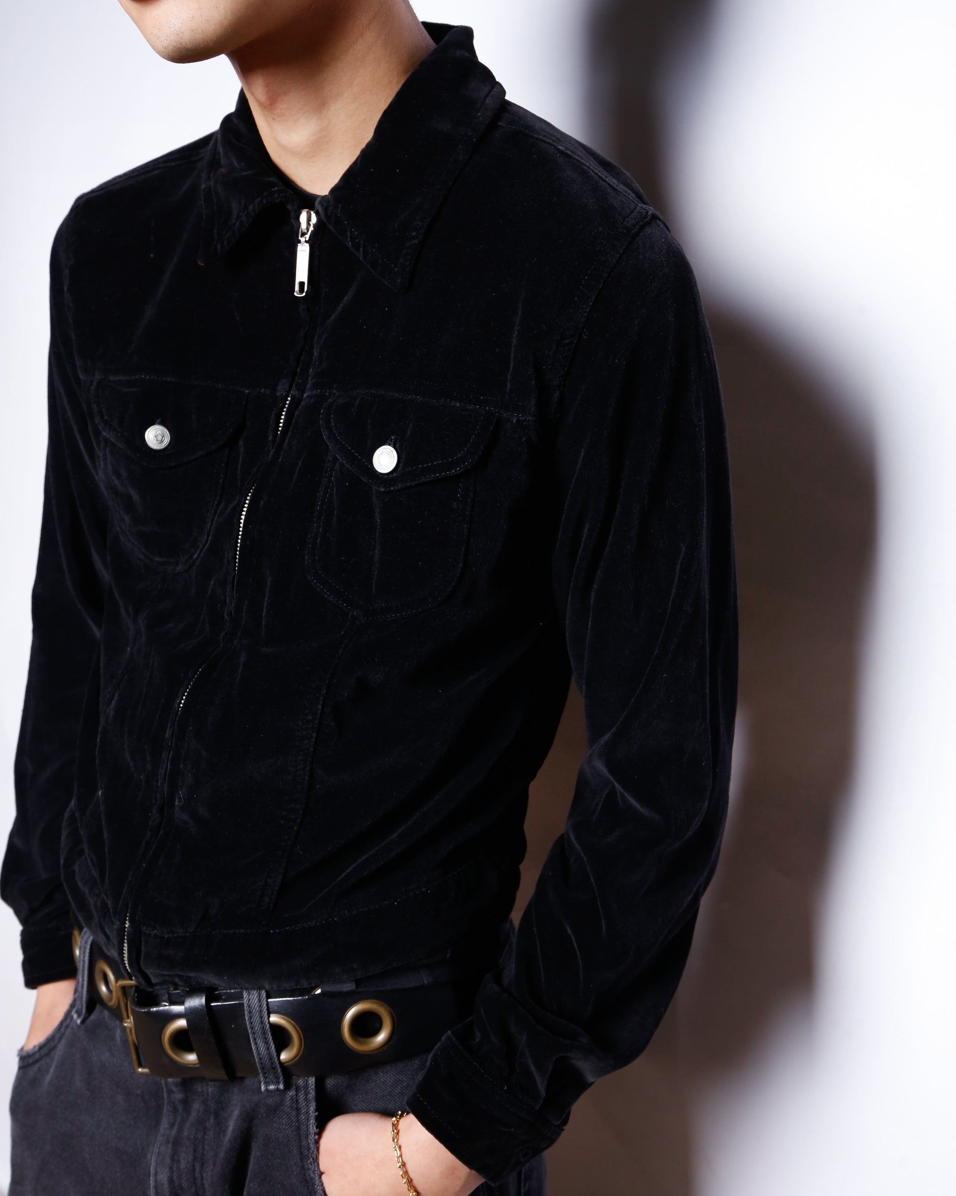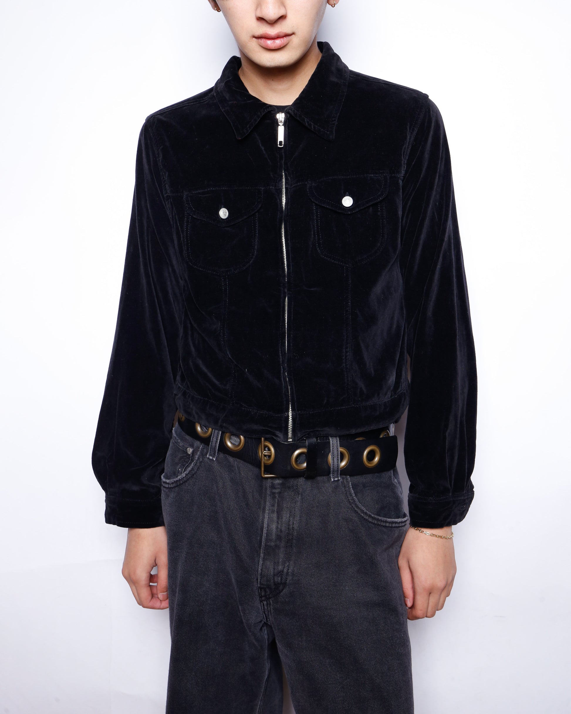 vintage cropped velvet zip jacket