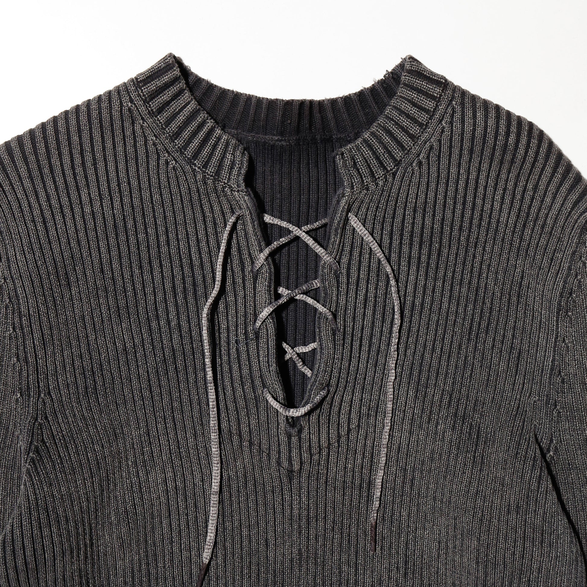 vintage lace up ribbed sweater