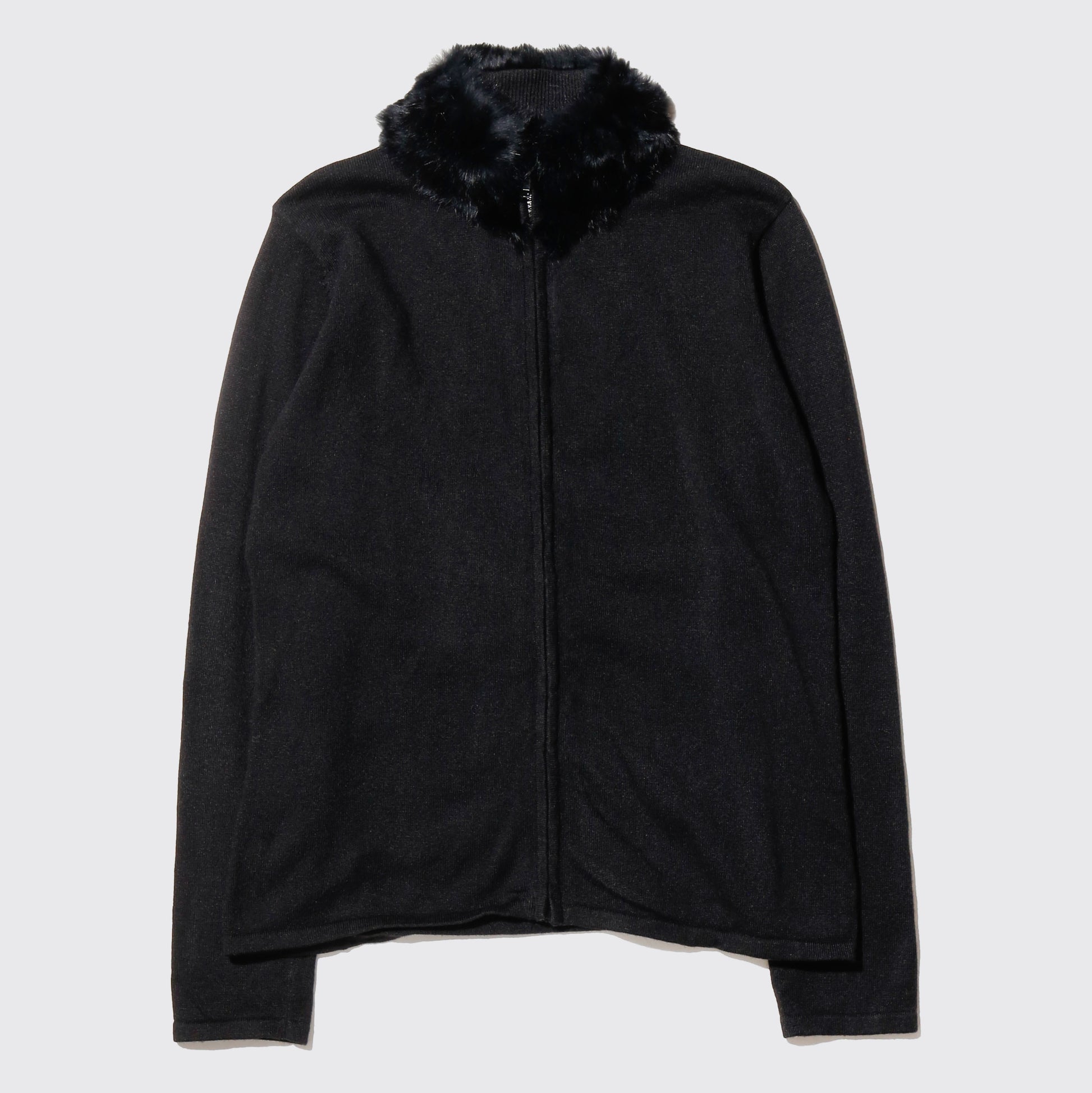 vintage fur neck zipped sweater