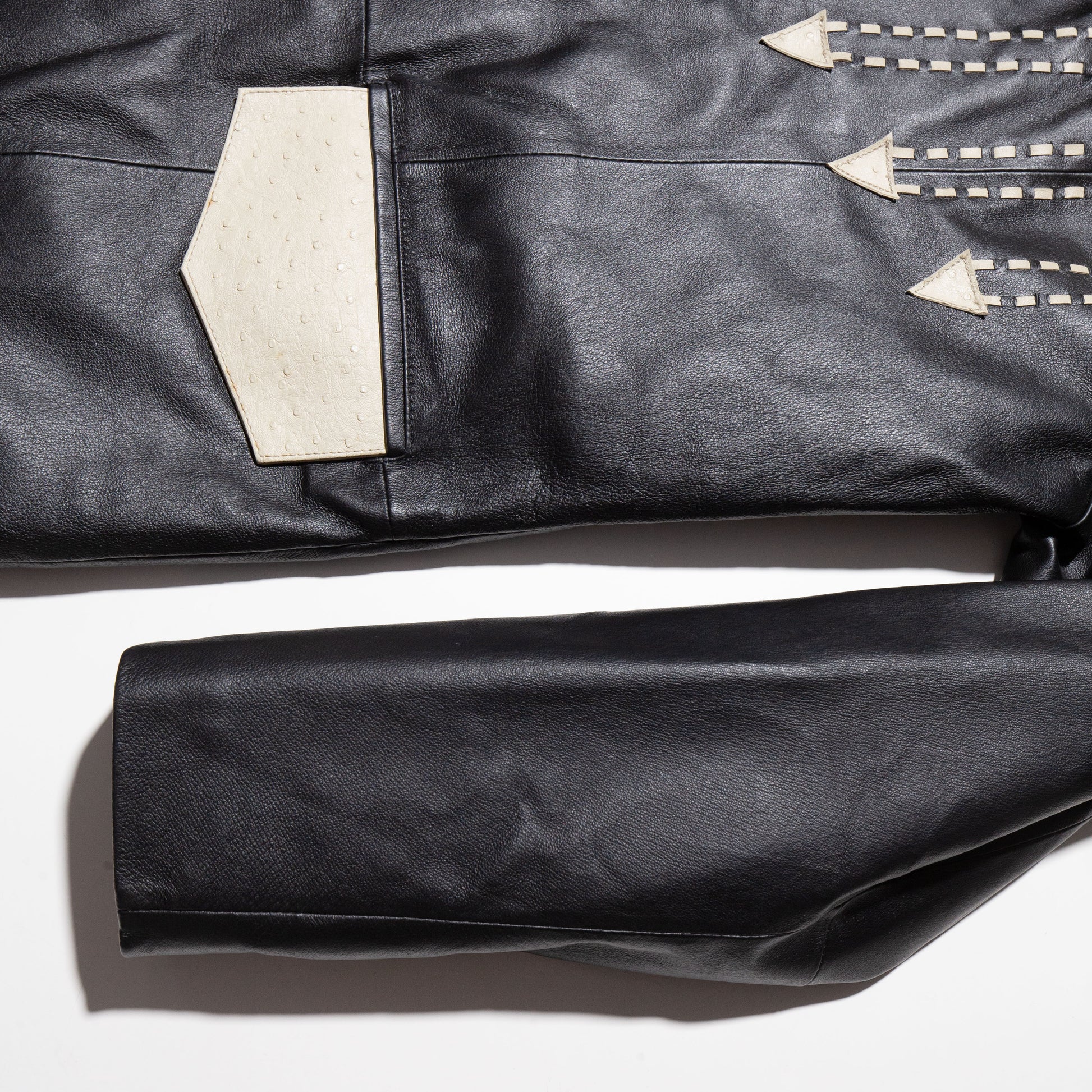 vintage orstrich yoke leather tailored jacket