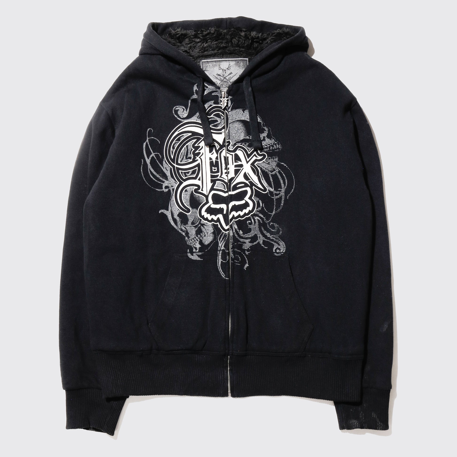 vintage 00's fox skull boa hoodie