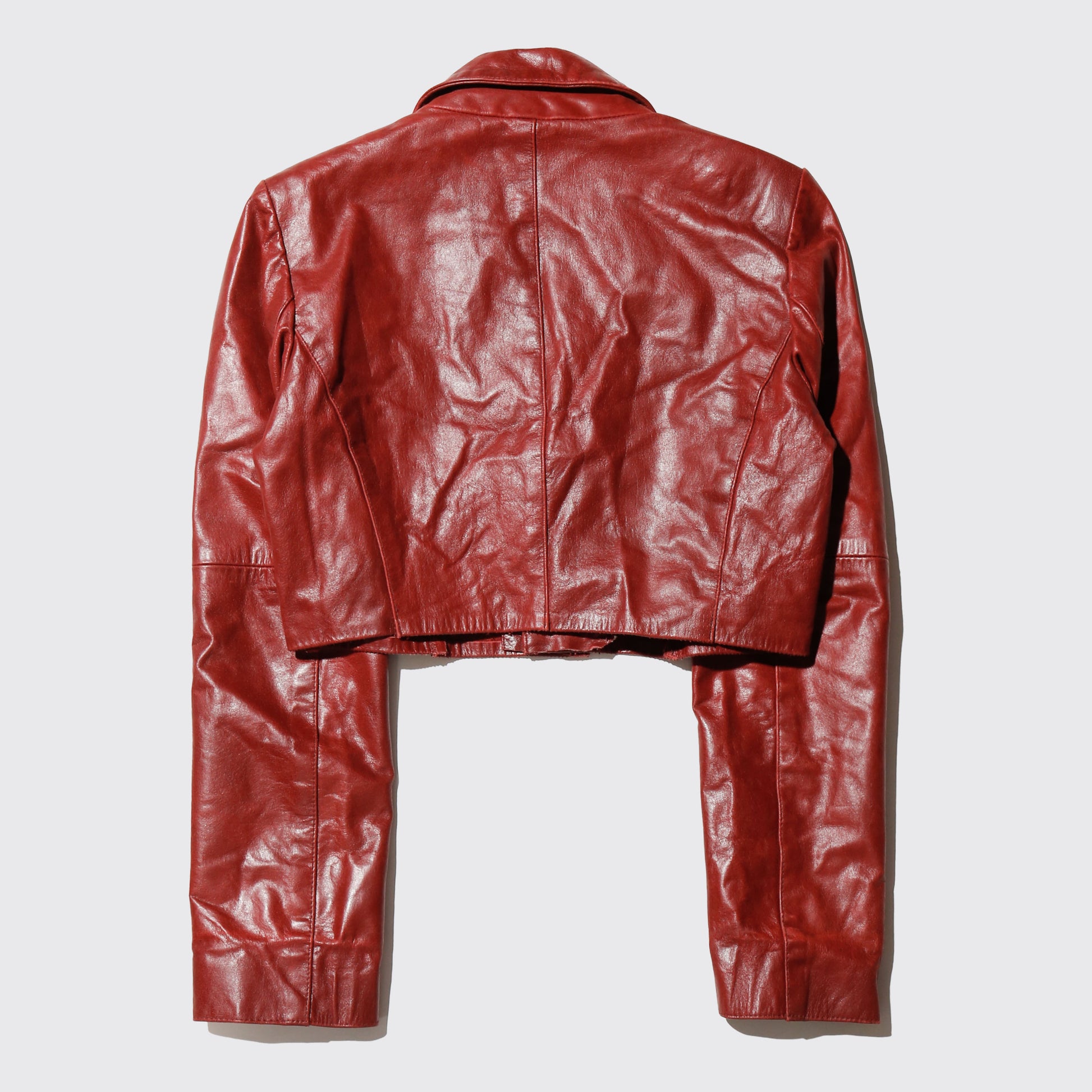 vintage cropped crimson leather jacket