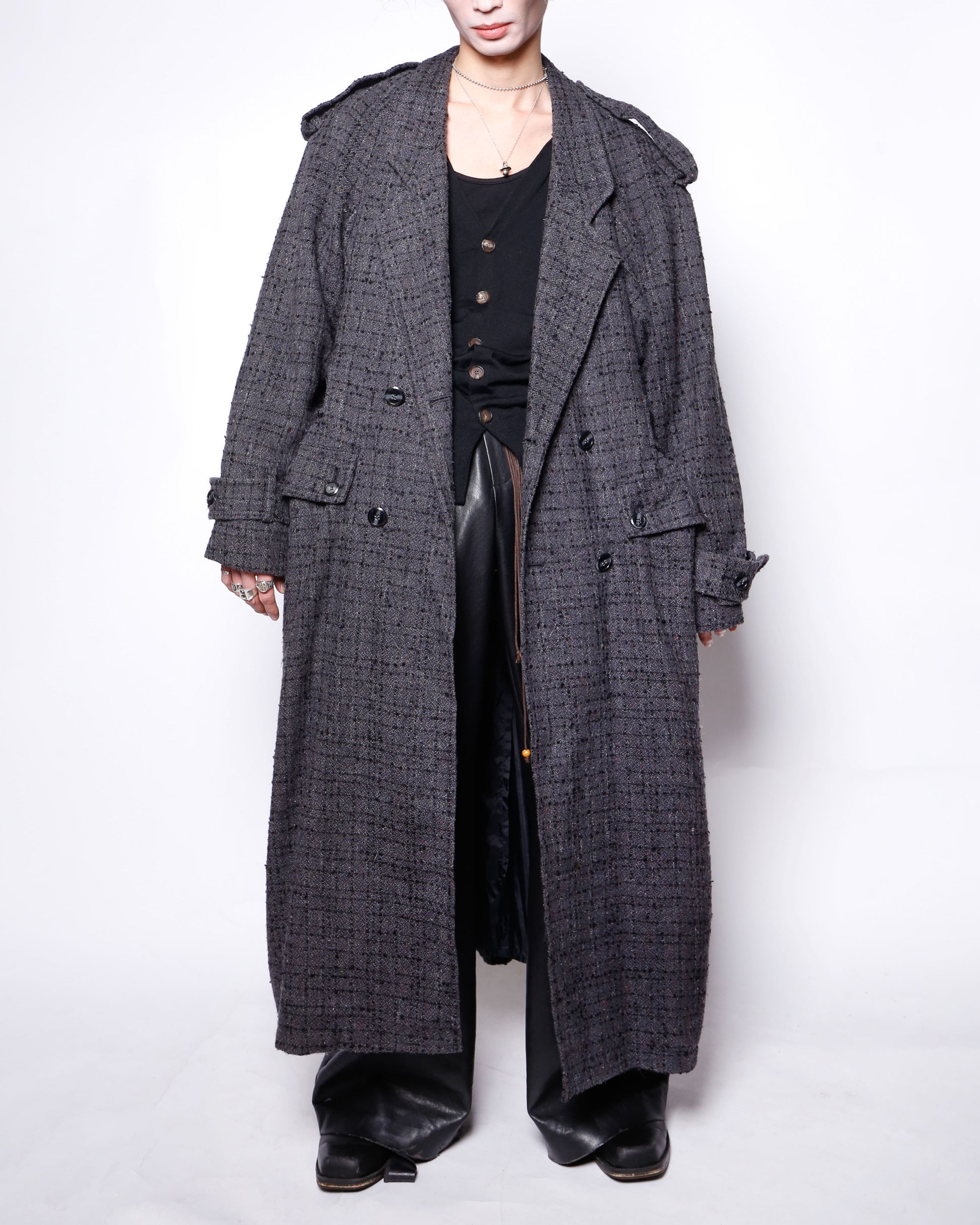 vintage super long tweed double breasted coat