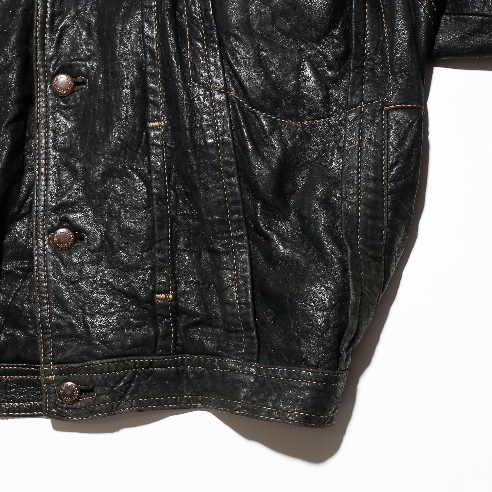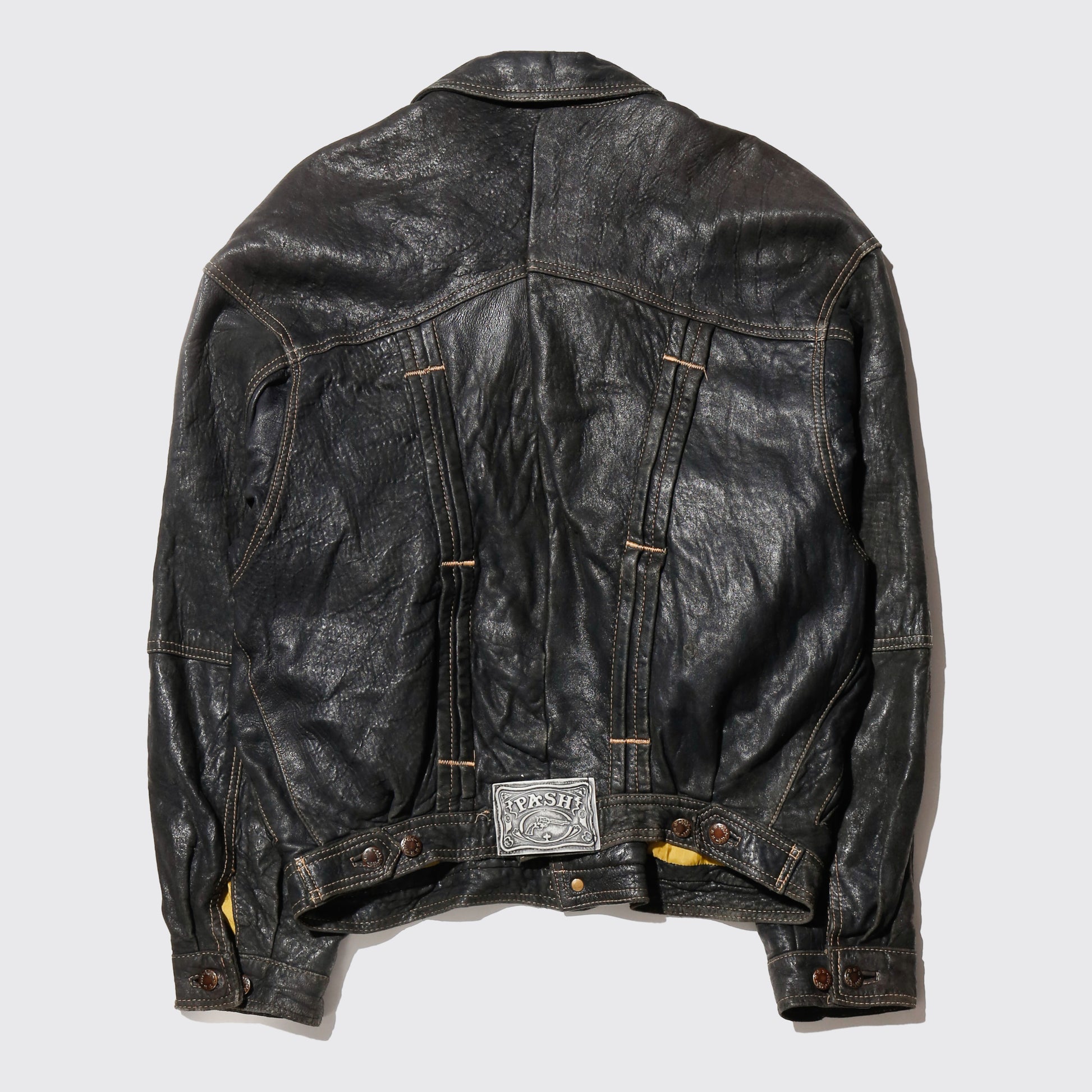 vintage 80's euro stiched leather trucker jacket