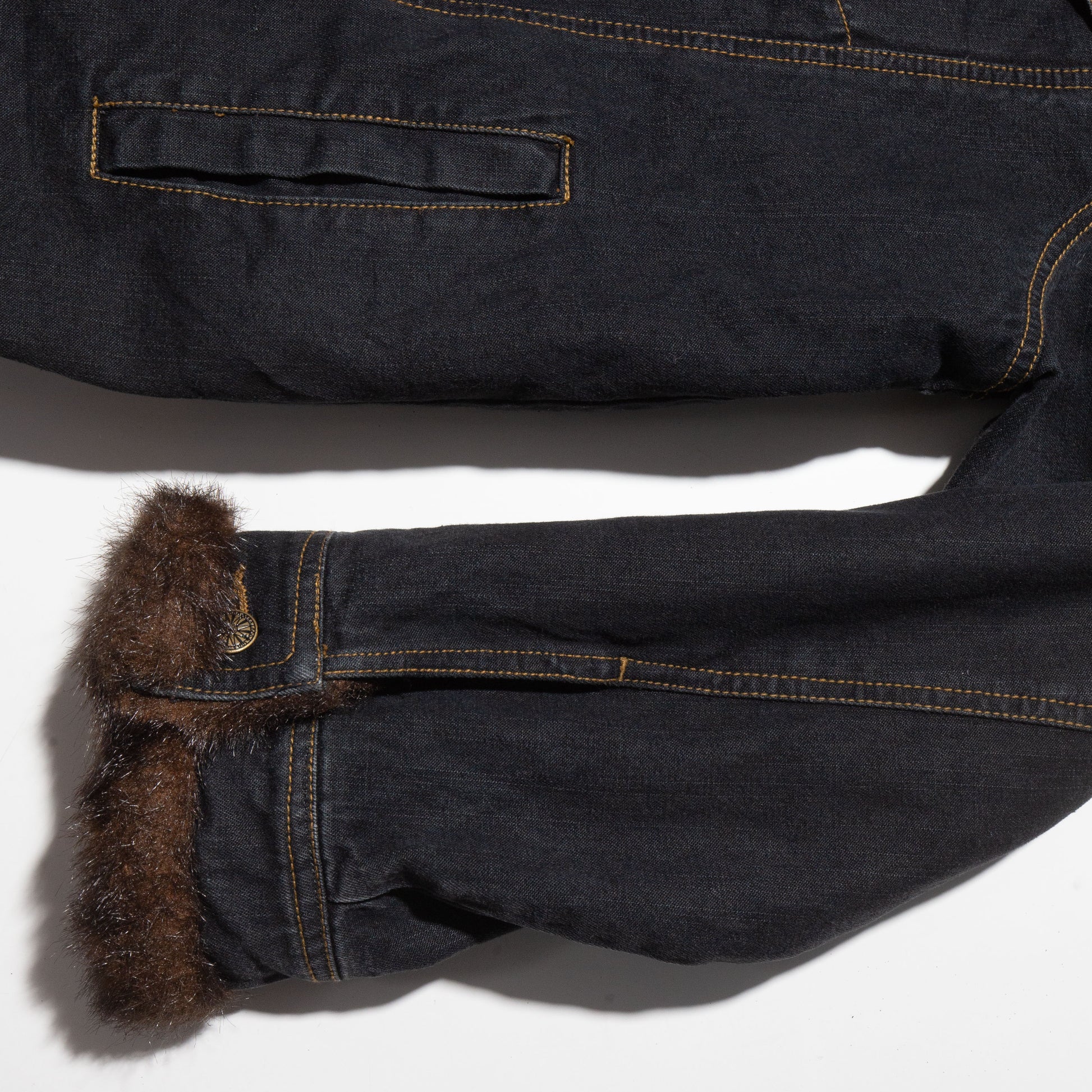 vintage faux fur combi trucker jacket