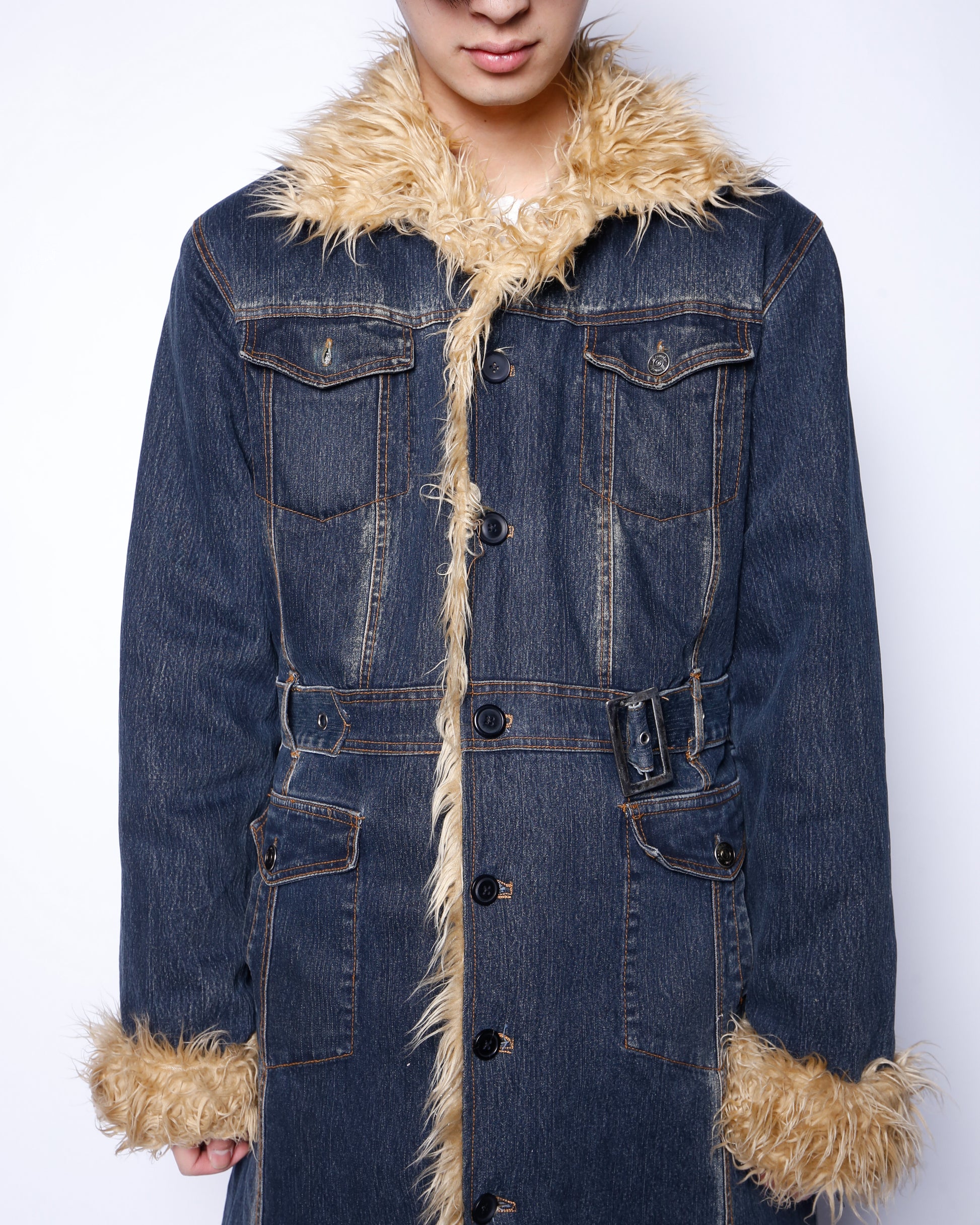 vintage faux fur denim coat