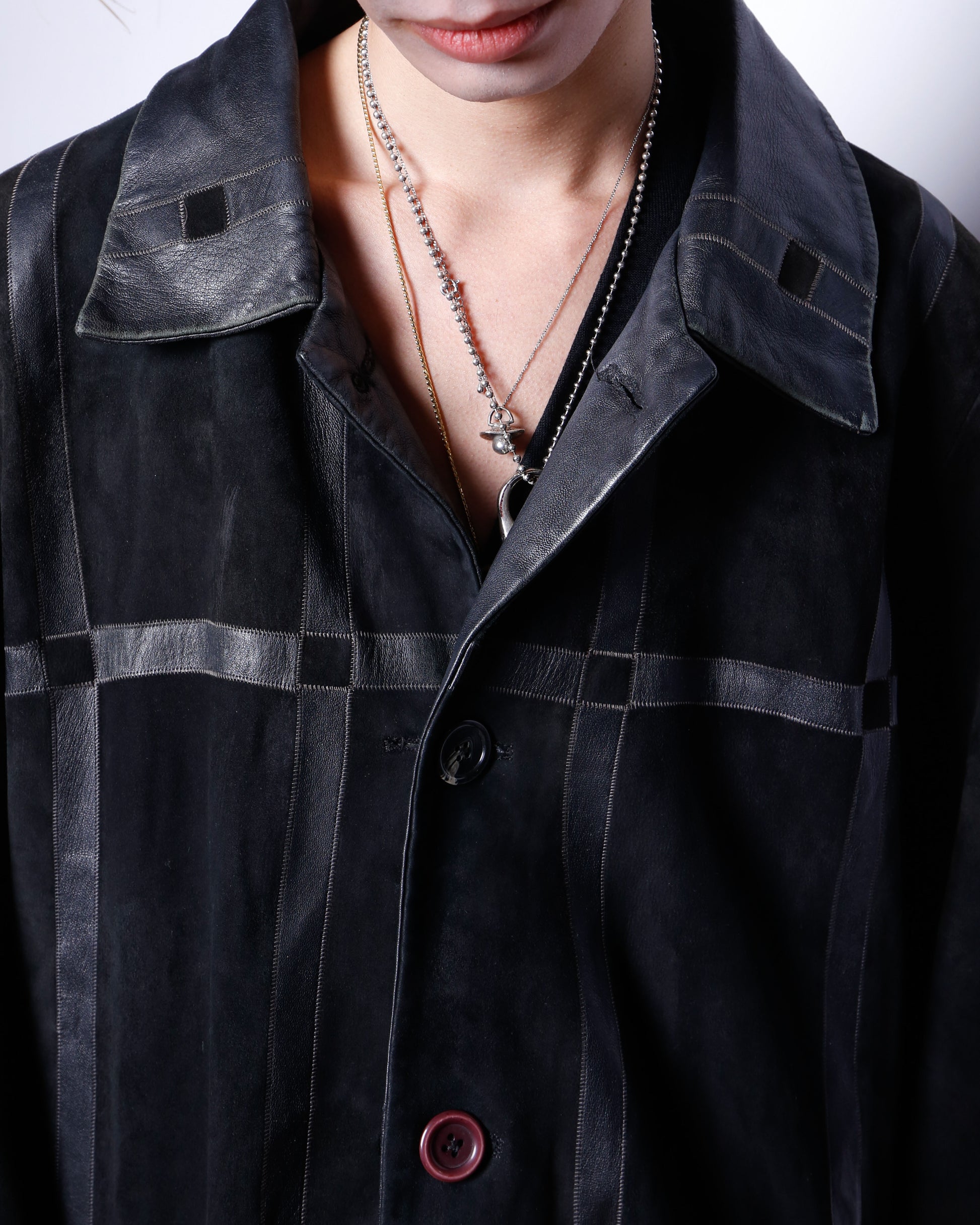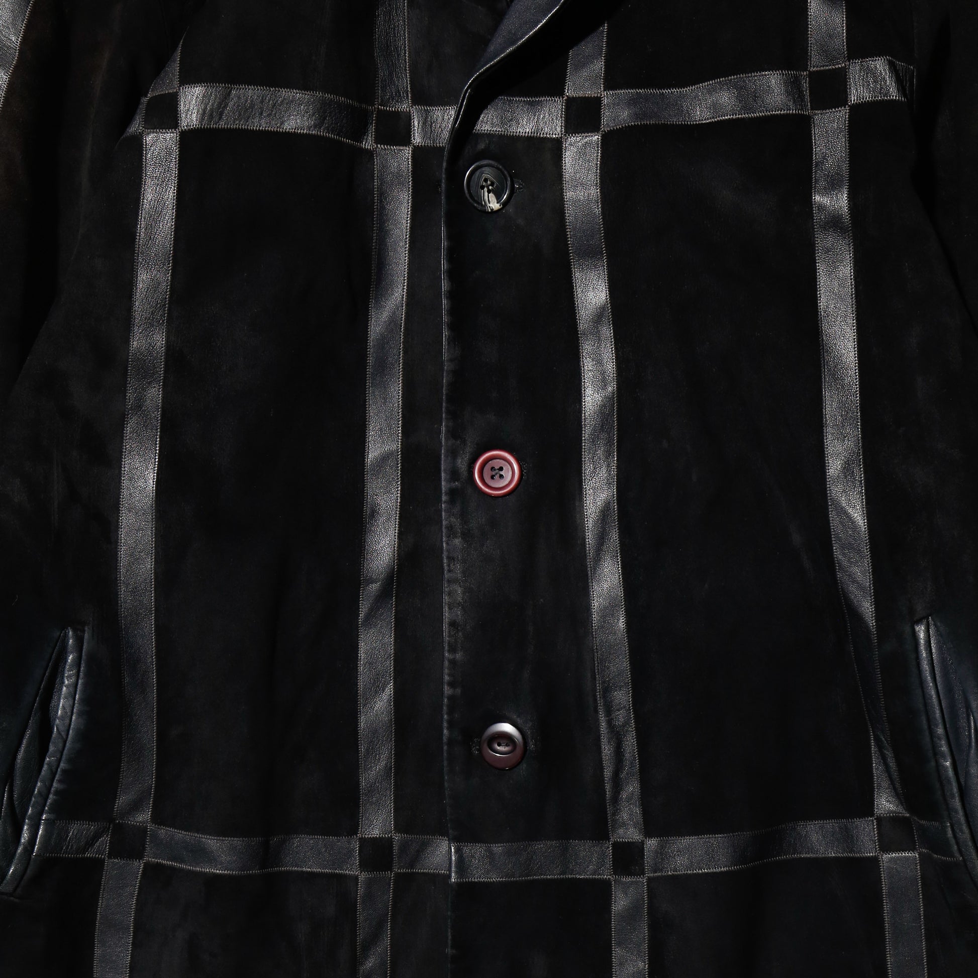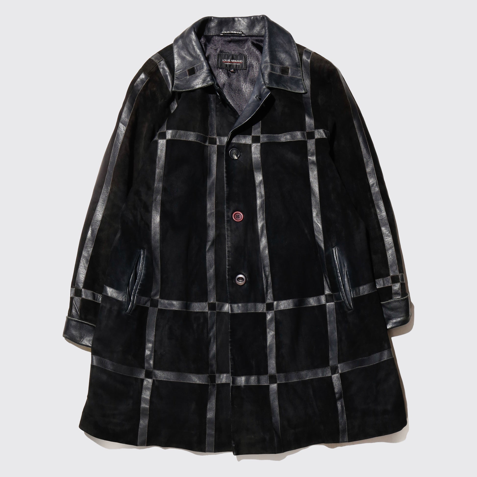 vintage euro louis armand grid leather coat