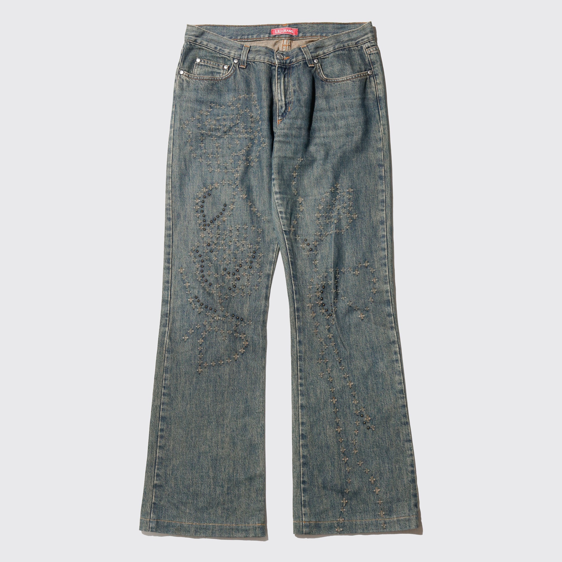 vintage studs distressed flare jeans