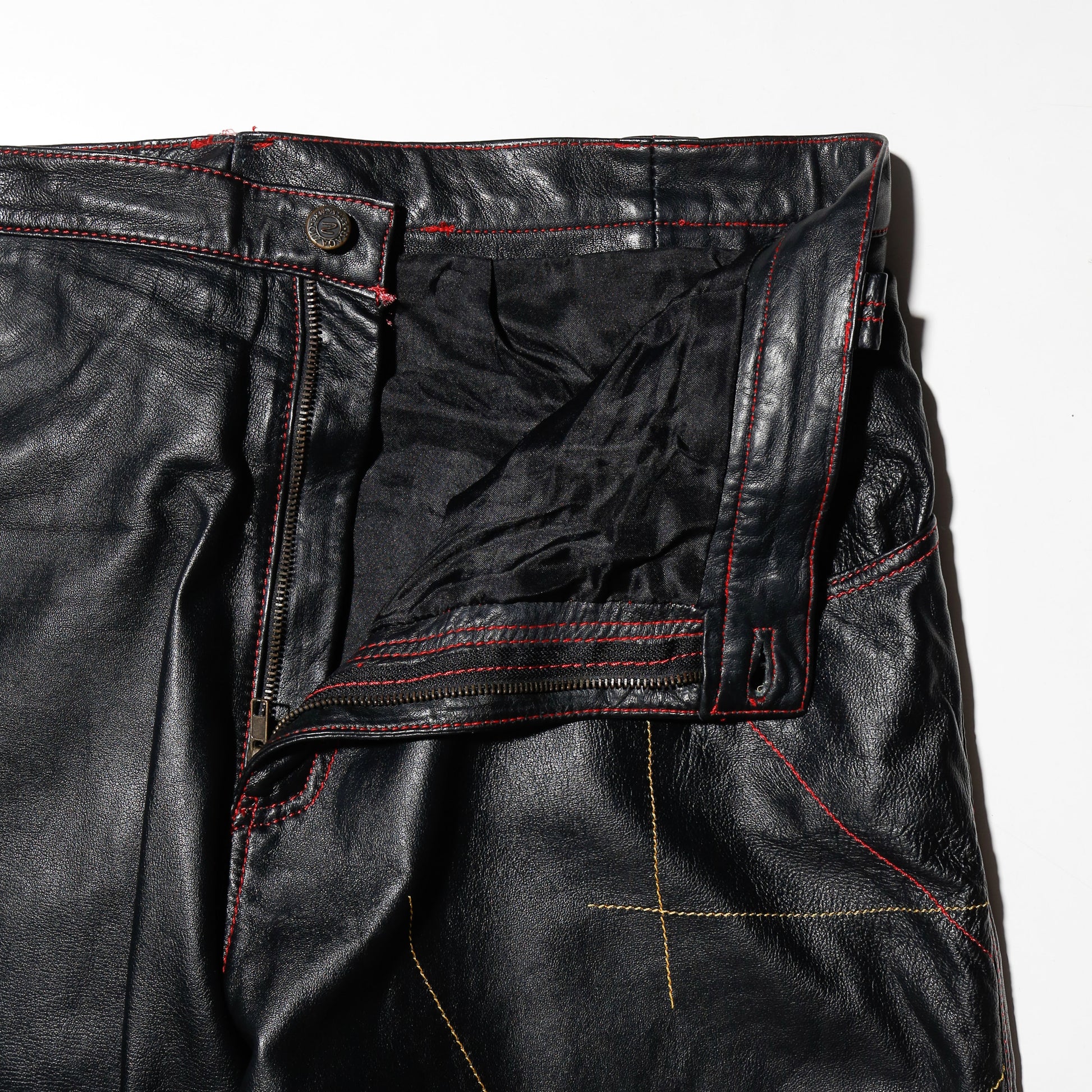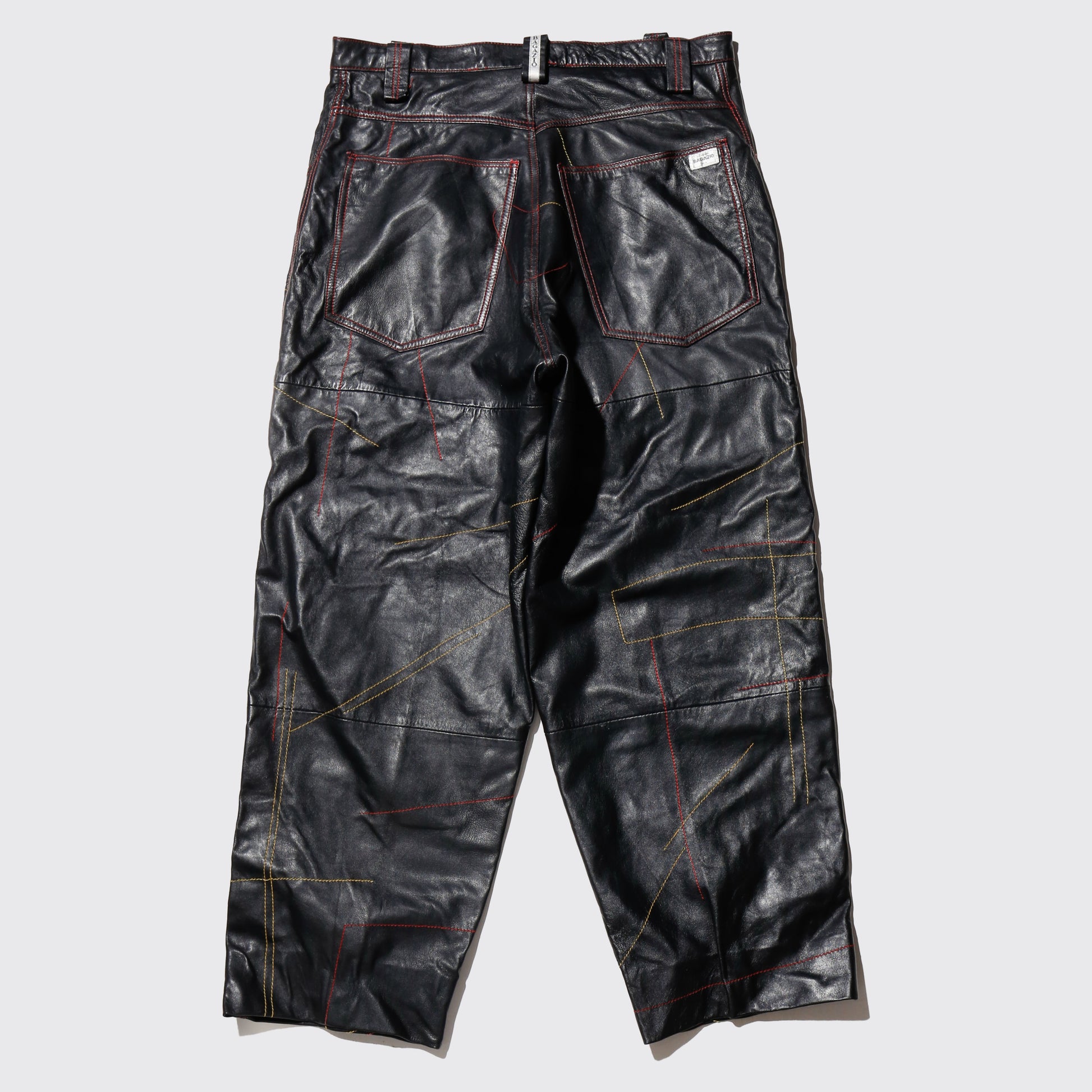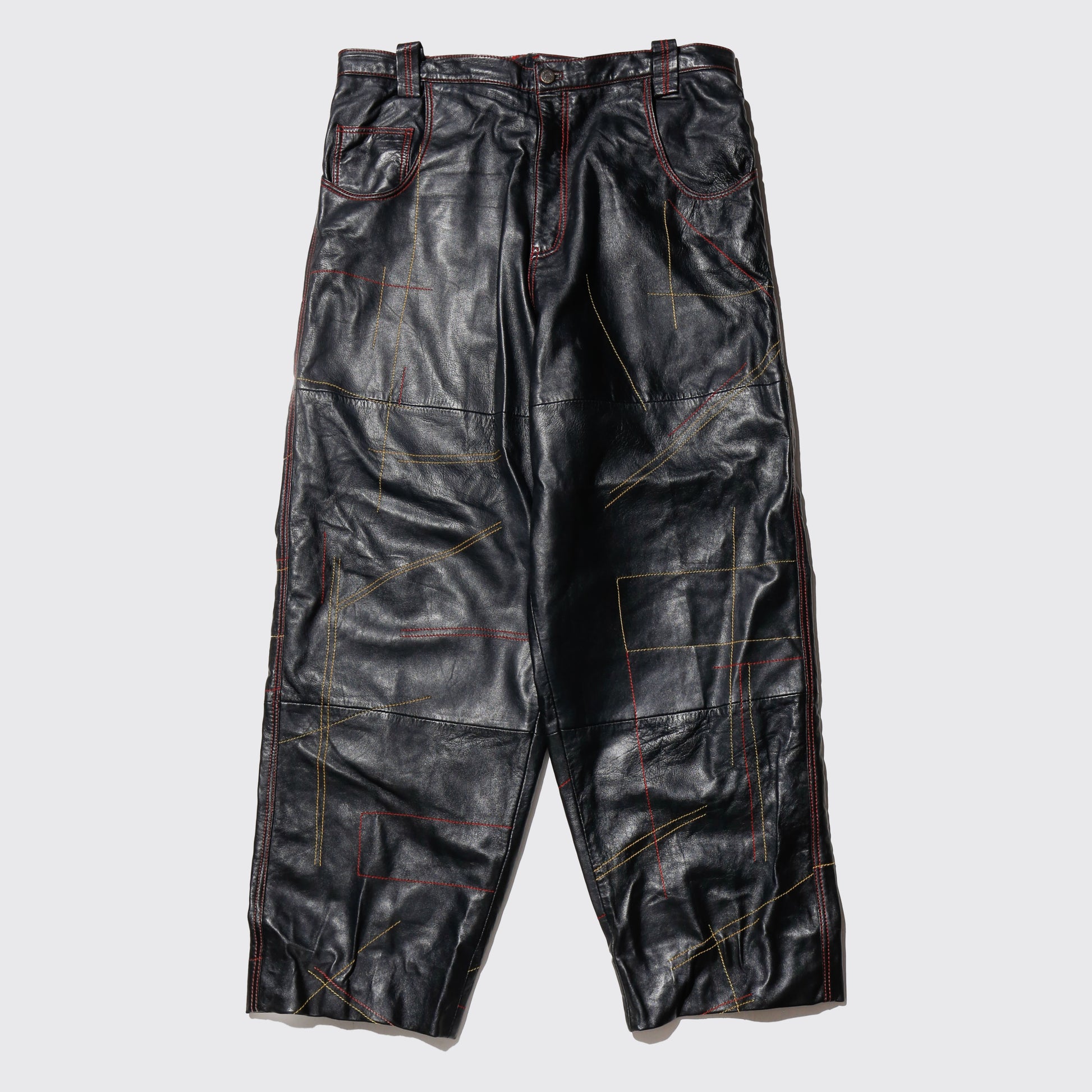 vintage stitched cow hide leather wide trousers