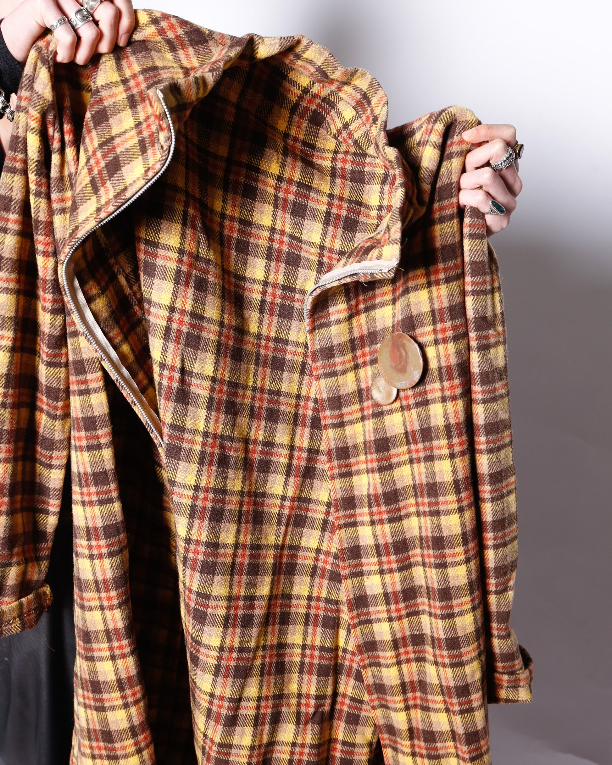 vintage super long check wool coat